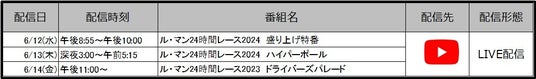 ■「FIA 世界耐久選手権(WEC) 2024 第4戦 ル・マン24時間レース」YouTube 概要/配信スケジュール