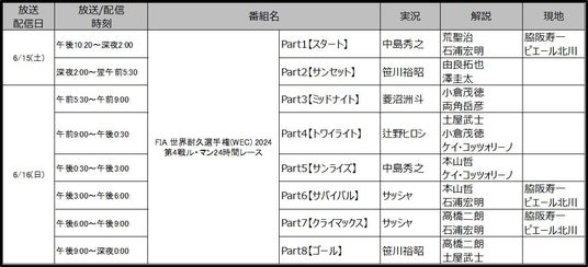 ■「FIA 世界耐久選手権(WEC) 2024 第4戦 ル・マン24時間レース 決勝」 出演者情報
