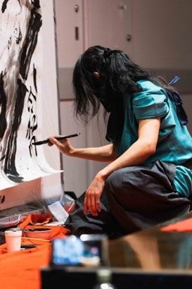迫力ある筆跡と、濃淡を繊細に表現する筆遣いを使い分け、墨の表現を追究し続ける。