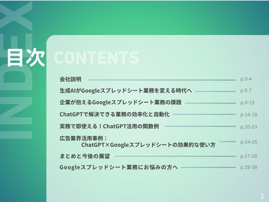 本レポートでは、広告業界における業務課題に対し、ChatGPTとGoogleスプレッドシートを組み合わせて解決へ導く実践的なアプローチと関数の使い方を紹介しています。