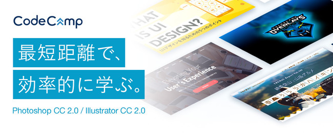 CodeCampが新たに公開したカリキュラム(Photoshop CC 2.0、Illustrator CC 2.0)では、Webデザイナーの実務プロセスに沿って、バナーデザインやデザインカンプ(完成見本)制作演習を行います。実務経験のない方でも、Webデザインに必要なスキル習得を目指すカリキュラムです。