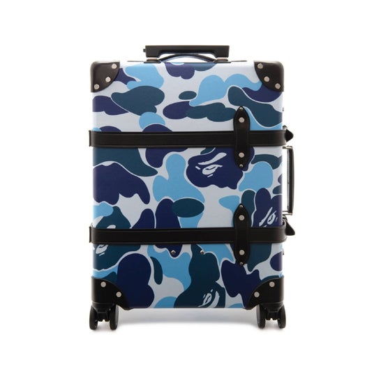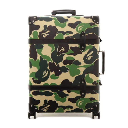 レザーストラップとレザーコーナーが特徴的なグローブ・トロッターの人気コレクション「センテナリー」をベースに、4輪キャリーオンケース、4輪ラージチェックインケース、そしてハンドバッグオプションのロンドンスクエアで展開されます。各アイテムにはBAPE(R)のオリジナルパターン 「ABC CAMO」が華やかに施され、人目を引くデザインとなっています。