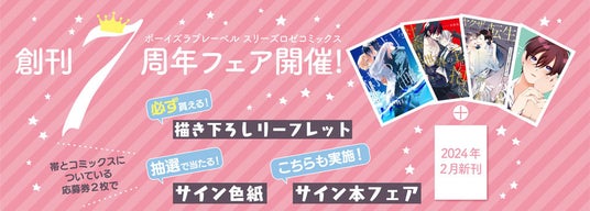 ・ボーイズラブレーベル「スリーズロゼコミックス」が創刊7周年フェアの開催を決定!・応募券合計2枚で描き下ろしリーフレットを応募者全員プレゼント!