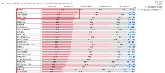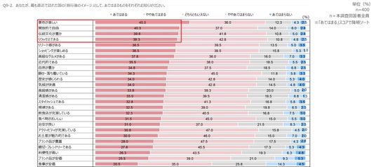 Q9-2.あなたが、最も直近で訪れた国の「旅行後のイメージ」として、あてはまるものをそれぞれお知らせください。(それぞれ1つずつ選択)