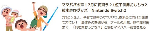 ママパパの声!7月に何買う?1位子供用おもちゃ2位水遊びグッズ Nintendo Switch2https://iko-yo.net/articles/17386