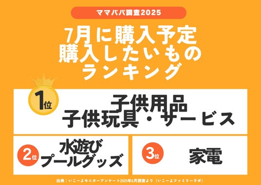 (本リリースは「発表!子育て世帯が7月に購入したいものランキング2025」を一部抜粋して作成しています。全文はこちら)