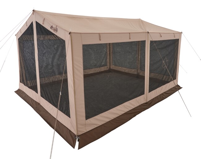 4面が高機能メッシュで覆われたスクエア型スクリーンタープ。幅約4mの広い居住空間なので大人数での使用に最適。