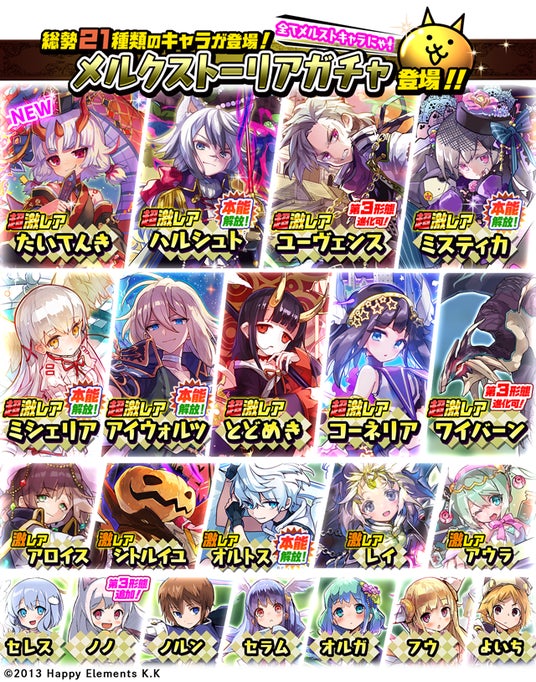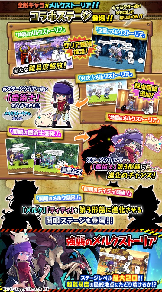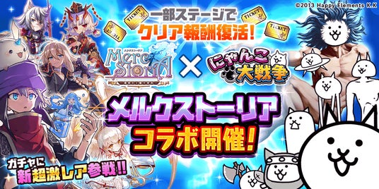 ポノス株式会社(本社:京都府京都市、代表取締役:辻子依旦、以下「ポノス」)はスマートフォン向けゲームアプリ「にゃんこ大戦争」において、Happy Elements株式会社(京都市下京区)のスマートフォン向けゲームアプリ「メルクストーリア」とのコラボイベントを、2024年11月1日(金)11:00より開始いたしましたので、これをお知らせいたします。