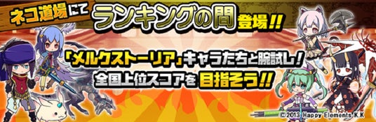 ネコ道場「ランキングの間」にてコラボ期間限定のランキングイベント「無気力修行」を開催いたします。「メルクストーリア」のキャラクターが多数登場する腕試しイベントとなっております。