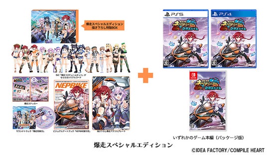 2024年6月27日(木)発売のバイクアクション『爆走次元ネプテューヌ VS巨神スライヌ』のプレイアブルキャラクター「天王星うずめ」「ネプテューヌ」「ノワール」「ブラン」「ベール」に着せかえが可能な3種類の衣装(計15点)を追加するDLCが、単体でも発売決定しました。