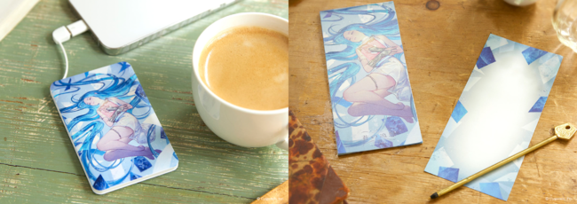 ▲(左から)モバイルバッテリー(蒼の追想) / 一筆箋(蒼の追想)