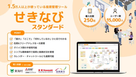 「せきなび」は誰が、どこで、何をしているか、ひと目でわかる在席管理ツール&フリーアドレス管理ツールで250社以上にご利用いただき実績を拡大しております。