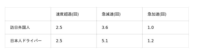 ・訪日外国人ドライバーの危険な運転挙動の発生頻度は、事故低減効果のあるテレマティクス自動車保険にご加入の日本人ドライバーと比べて、急減速を中心に低い結果となりました。