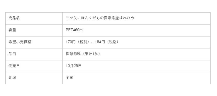 アサヒ飲料株式会社(本社 東京、社長 米女太一)は『三ツ矢にほんくだもの愛媛県産はれひめ』を10月25日から期間限定で発売します。