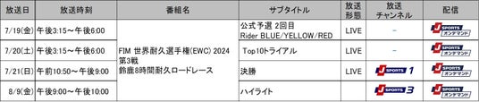■FIM 世界耐久選手権(EWC) 2024 第3戦 鈴鹿8時間耐久ロードレース 放送/配信予定