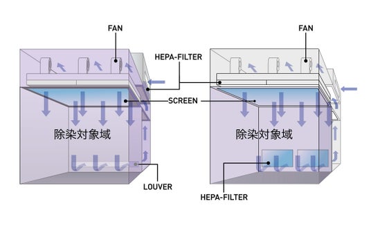 更に当社独自のファン・フィルタシステムにより給排気HEPAフィルタや給気ファンを削減することで、装置のコンパクト化を実現しました。