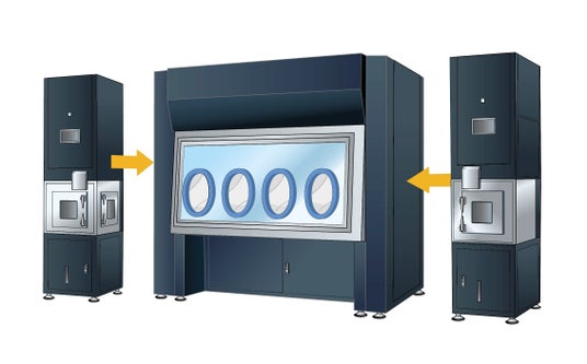 「Sterigion(R)」のサイドユニット(パスボックス及び除染ユニット)は、装置左右のどちらにも取り付け可能で、環境に応じた柔軟な対応が可能です。他にもご要望に応じたサイドユニットを追加できるため、用途変更時にメインユニットを買い直す必要がなく、コストと運用の両面で大きなメリットがあります。