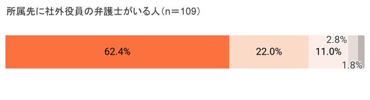 アンケートに回答した法務パーソンの所属企業では、42.1%に社外役員の弁護士が「いる」という結果になりました。