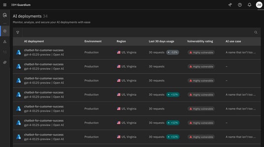 同ソリューションは、IBM Guardium AI Securityを搭載しています。このソフトウェアは、生成AIの導入とそれに伴う「シャドーAI」と呼ばれる未承認AIモデルの存在リスクが急増する中、組織のAI展開をセキュリティーの脆弱性やデータ・ガバナンス・ポリシー違反から保護するのに役立ちます。