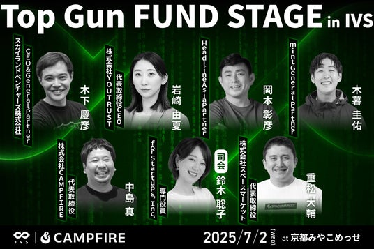 株式会社CAMPFIRE(以下、CAMPFIRE)は、IVSとの共同で、7月2日より京都で開催される「IVS2025」において、個人の挑戦から企業の新規事業まで、幅広い事業者を対象とした包括的な支援プログラム『Top Gun FUND』を実施します。