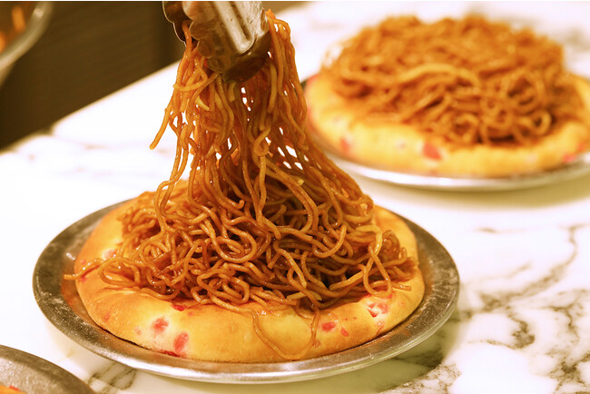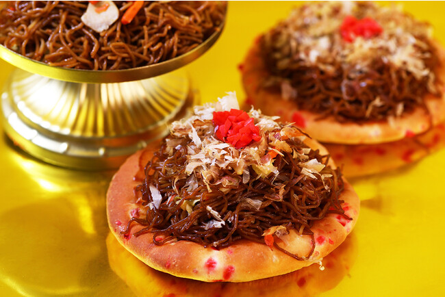 「パンの間に焼きそばが挟まれているだけじゃ物足りない!」そんなリクエストにお応えし開発いたしました。当シリーズでは紅ショウガを練り込んだお皿のような特製バンズを作り、おさまらないくらいの焼きそばをのせました。その量はなんと、焼きそば1食分(150g)!紅ショウガの塩味が感じられるバンズとソースのコクの旨味があふれる焼きそばは、つい手が止まらなくなるほどベストマッチな味わい。メインはパンなの?焼きそばなの?分からなくなるほどの「夢の焼きそばパン」です。