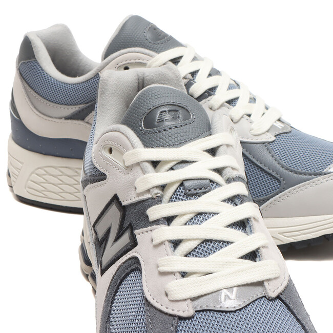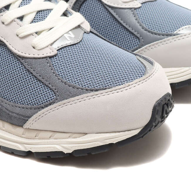 トーン違いのブルーを各パーツのメッシュ、スウェードに落とし込みながら、New Balanceのシグネチャーカラーでもあるグレーを基調としている。
