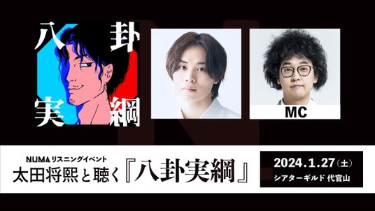 総合エンターテインメント企業アミューズが手掛ける音声版サブスクリプションサービス、イヤードラマ配信サイト「NUMA」で好評配信中の『八卦実綱』(読み:ハッケ サネツナ)を、初の試みとなるリスニングイベントとして2024年1月27日(土)シアターギルド 代官山にて開催いたします。