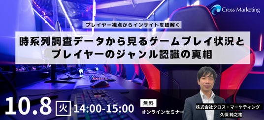 本セミナーでは、2021年から実施してきたゲーム調査の時系列分析を通じて、プレイヤーのプレイ状況やプレイ理由に関する最新のトレンドを明らかにします。さらに、細分化されたジャンル名称に対する認知や、人気タイトルに関するジャンル認識を探ることで、「プレイヤーが知っているジャンル」と「プレイヤーがゲーム性を理解しているジャンル」を徹底的に整理します。