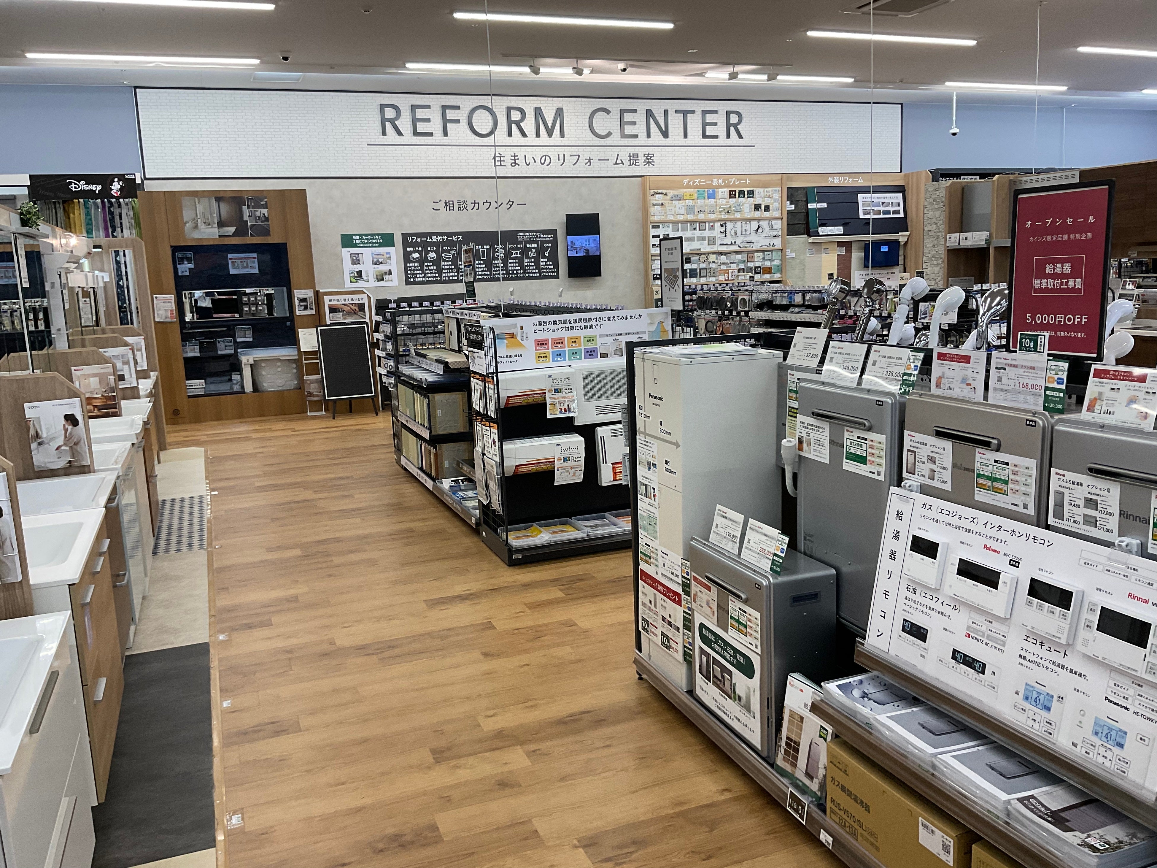 リフォームセンターでは、実際の使用シーンをイメージした展示を取り入れることで、工事後の住まいを具体的に想像しながら商品や工事内容を検討いただけます。専門知識を持つメンバー(従業員)がお客様のお住まいの悩みを一緒に考え、より快適な生活空間の実現に向けてご提案・サポートします。また、市内に点在する各メーカー様のショールームとも連携。カインズ 岡崎美合店からのご案内・予約を通じて実物を確認しながら検討いただけるので、より安心してリフォームをご相談いただけます。
