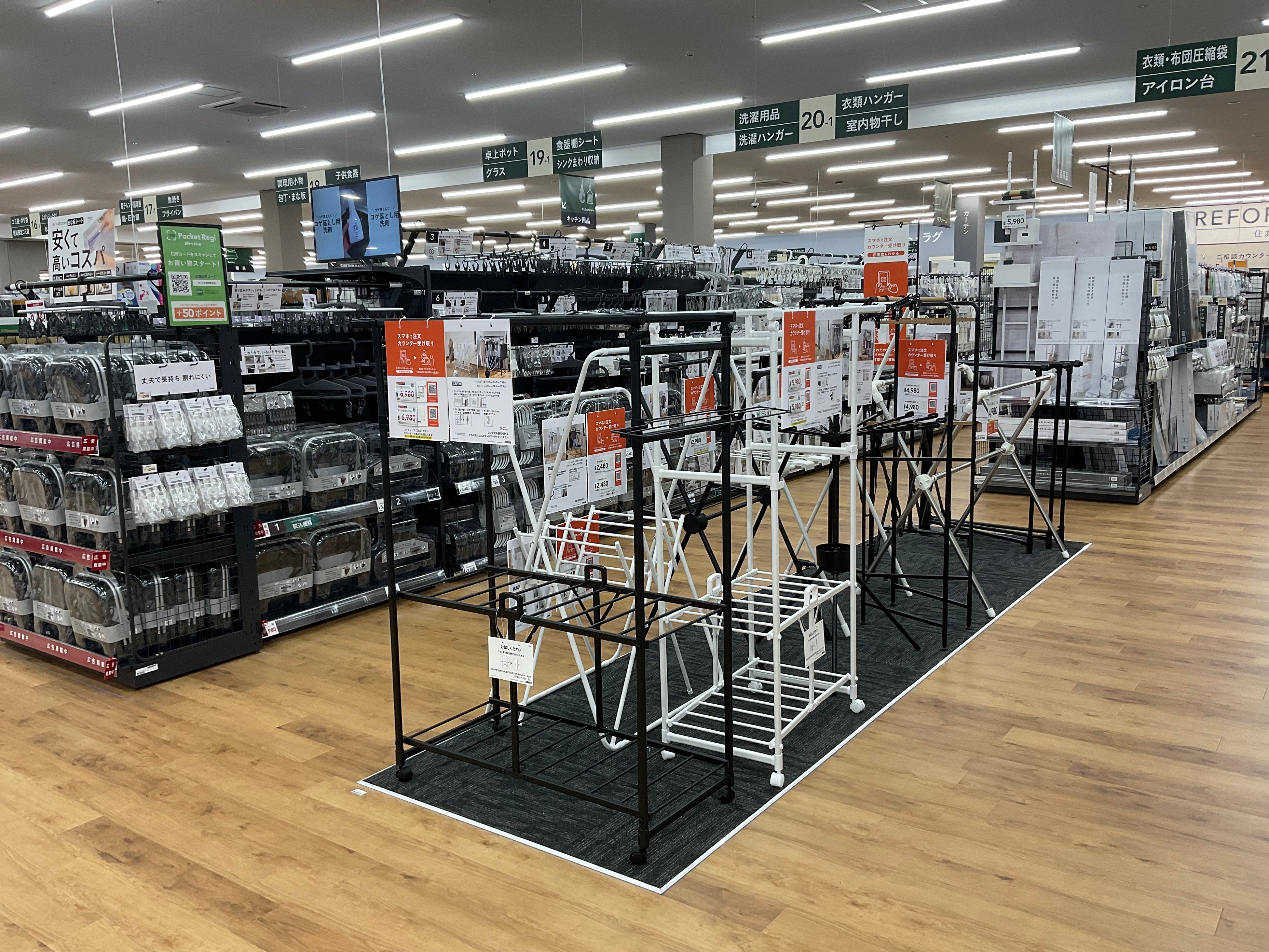 毎日の家事をラクに楽しくする「楽カジ」の売場では、くらしを支える価格で商品を提供