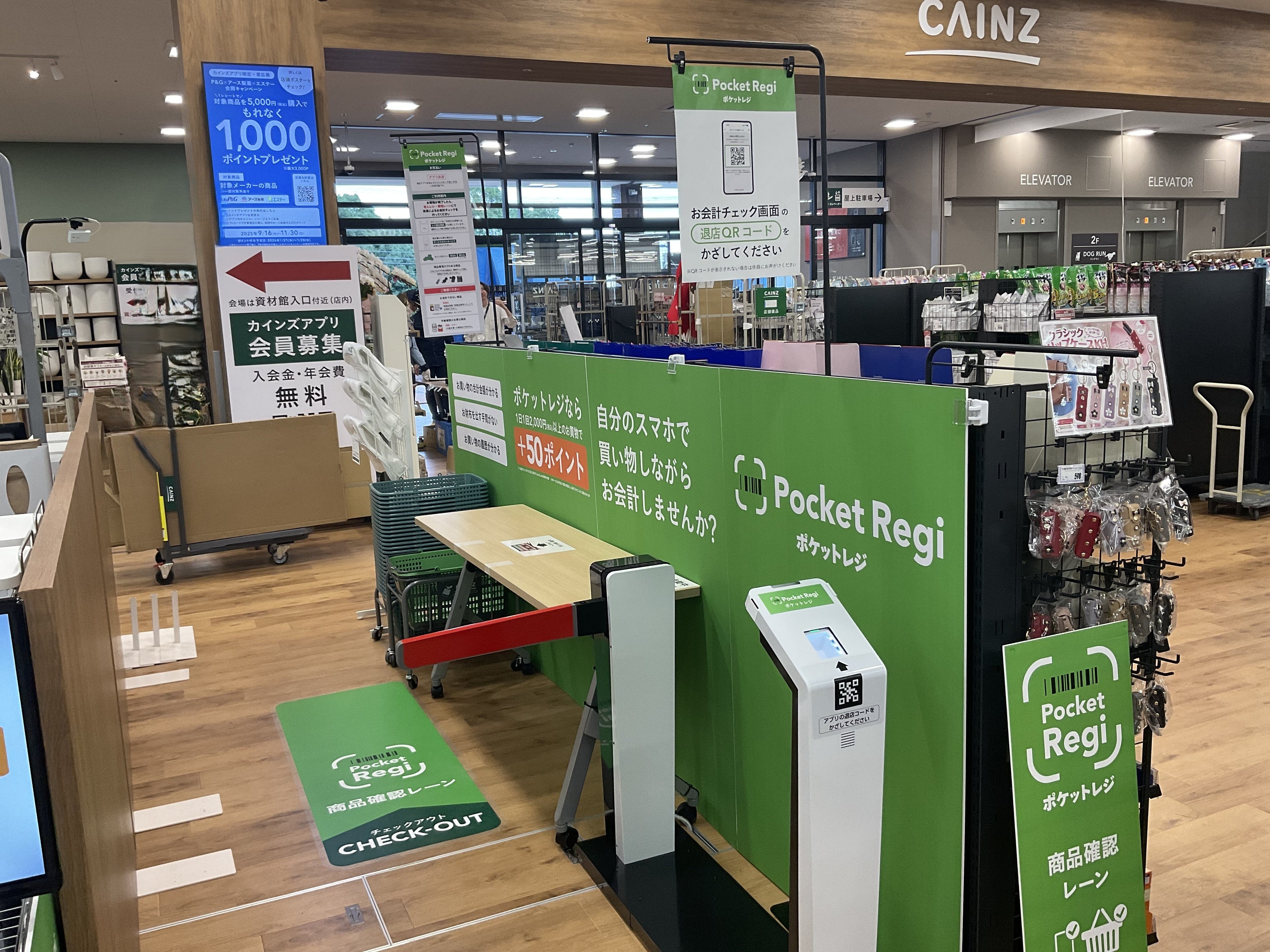 カインズアプリやオンラインショップから商品の注文、取り置きができる「CAINZ PickUp」の専用ロッカーを店内に設置。広い店内を探し回ることなく取り置きや事前決済での購入ができるので、通勤・通学時、お買い物のすき間時間を活用して気軽にお立ち寄りいただけます。さらに、カインズアプリがそのままレジになる「Pocket Regi」では、専用のゲートを設置するなど、最新のデジタルサービスも導入しており、カインズならではのスムーズでストレスフリーなお買い物を楽しんでいただけます。