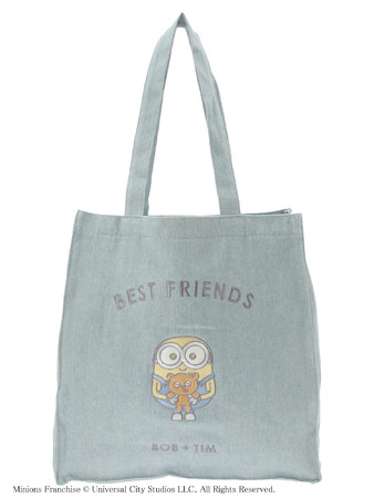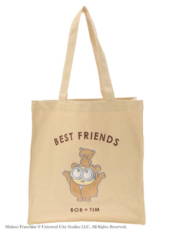 日常使いしやすいトートバッグは2種類をご用意。Maison de FLEURでは珍しいデニム生地のバッグは、ボブのオーバーオールをイメージ。ボムがティムを抱えている可愛らしいアップリケを施しました。一方でベージュのキャンバス地を使用したバッグは、ボブがティムの姿に変身したふわふわ素材のアップリケがポイント。頭にティムをのせ、おどけたポージングがチャーミングなデザインです。