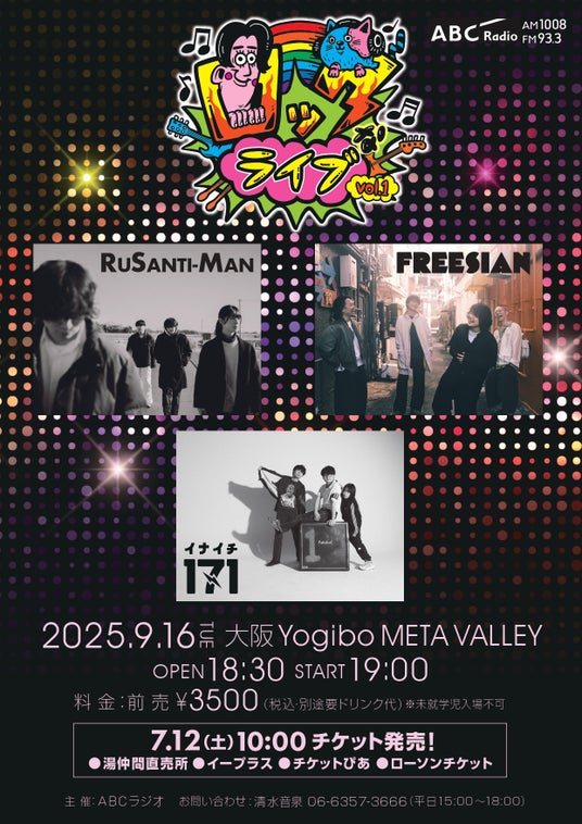 出演アーティストは、171(イナイチ)、フリージアン、ルサンチマンの3組!