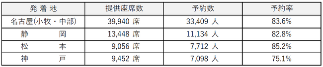 ※ 日本航空とのコードシェア分については、提供座席数および予約数に含まれておりません。