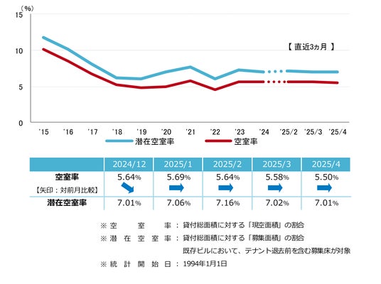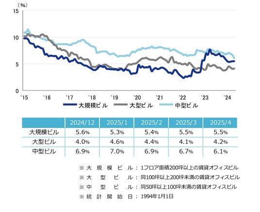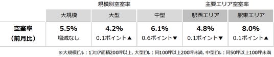 空室率 3ヵ月連続で小幅な低下 「中型」が前月比マイナス0.6ポイント