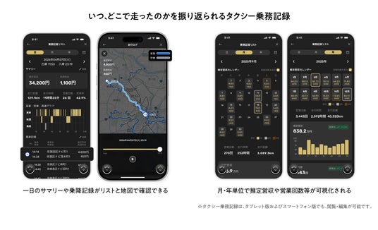 さらに、タクシードライバー向けには、乗務記録と走行ログを自動で作成する、乗務記録機能も提供開始いたします。