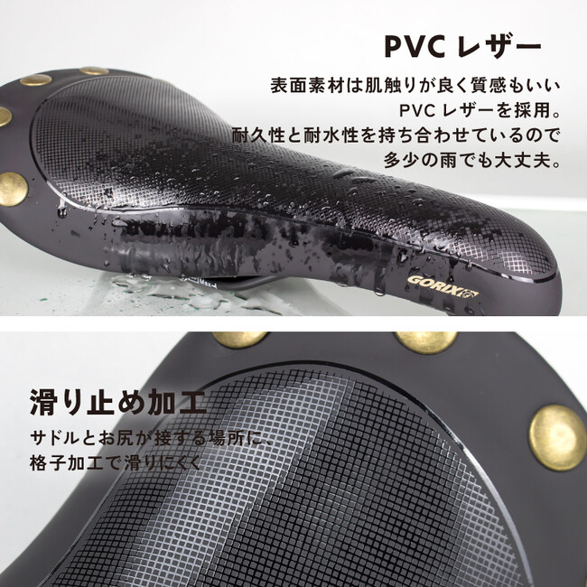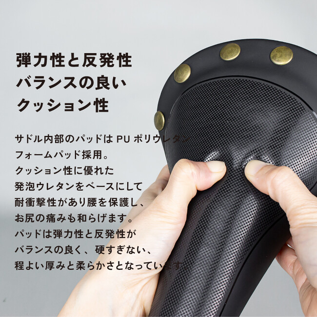 またサドル面は一定の耐久性と耐水性を持ち合わせたPVCレザー素材を採用しているので、