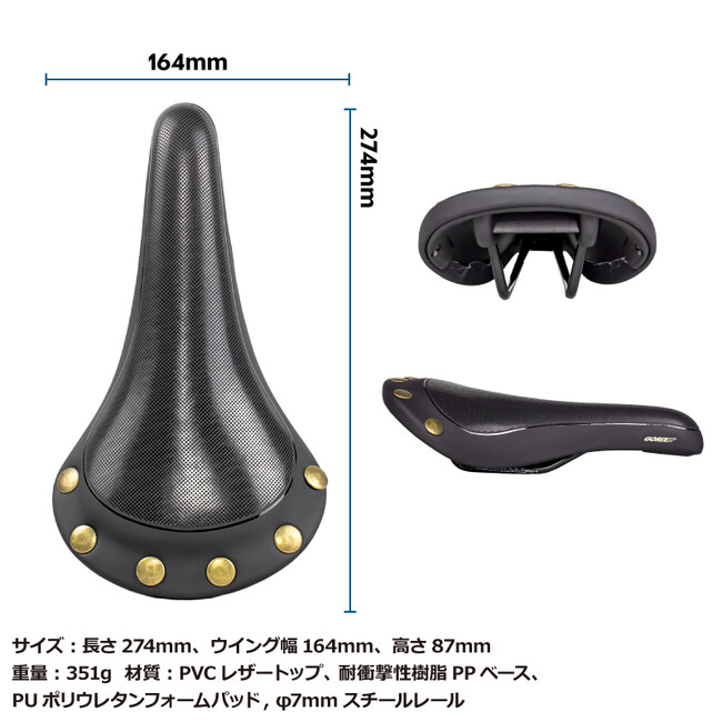 ロードバイクやクロスバイクなどクラシックデザインの自転車にもカスタムを楽しめるサドルとなっています。