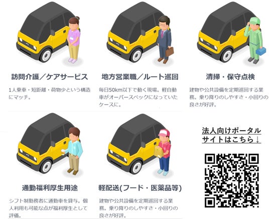KG社は、短距離移動に特化した一人乗りの超小型EVモビリティ“mibot(ミボット)”を開発しています。“mibot(ミボット)”は原付ミニカー規格の車両であり、安価な維持コスト(車検不要、重量税が無料など)でありながら、普通自動車の特徴(ドア・エアコン付きの快適性、高い安全性)やルール(二段階右折不要、ヘルメット着用不要など)が適用されます。