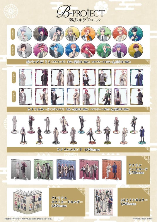株式会社A3はTVアニメ『B-PROJECT~熱烈*ラブコール』の新作グッズを発売いたします。