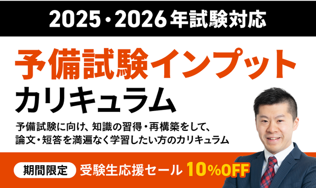 2025年・2026年の予備試験合格を目指しており、学習経験はあるものの、論文・短答のインプットをやり直し、基礎力・実践力を強化したいという方におススメです。