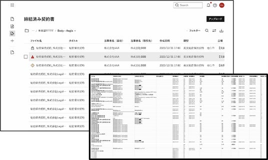 「LegalOn Cloud」の「コントラクトマネジメント」は、締結済みの契約書をアップロードするだけで、契約書情報(「タイトル」、「契約締結日」、「契約当事者名」、「契約開始日」、「契約終了日」、「契約金額」など)を自動で抽出して検索可能なデータベースに組み上げるほか、契約書の期限や契約状況などを効率的かつ漏れなく管理するモジュールです。