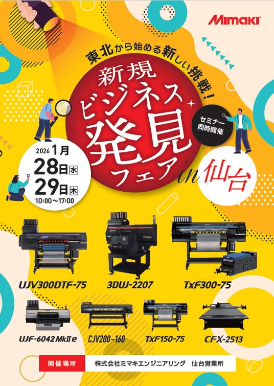 この度、弊社シンクイノベーション株式会社は、株式会社ミマキエンジニアリング 2026年新春展【仙台会場】に出展することが決定しました。