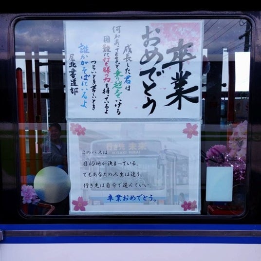 今回で5回目を迎える本企画。卒業という節目を前に、いつもの通学時間を、これまでの学生生活を振り返り、明日への一歩を踏み出すための特別な時間にしてほしい という願いから、バスをメッセージを届ける場としてご提供しています。