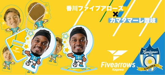 このたび香川ファイブアローズならびにカマタマーレ讃岐では香川のスポーツをさらに盛り上げるために協力し今週末の試合において両チームのブースター、サポーターが両クラブの会場へ足を運びたくなるようなグッズ企画を実施いたします。