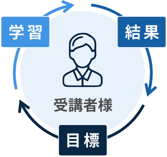 ネイティブキャンプの法人向けサービスでは、英語習得に不可欠な「目標・学習・結果」という学習サイクルをまわすため、各フェーズでのサポートや結果の可視化など、継続して学習できる環境が整っています。