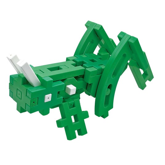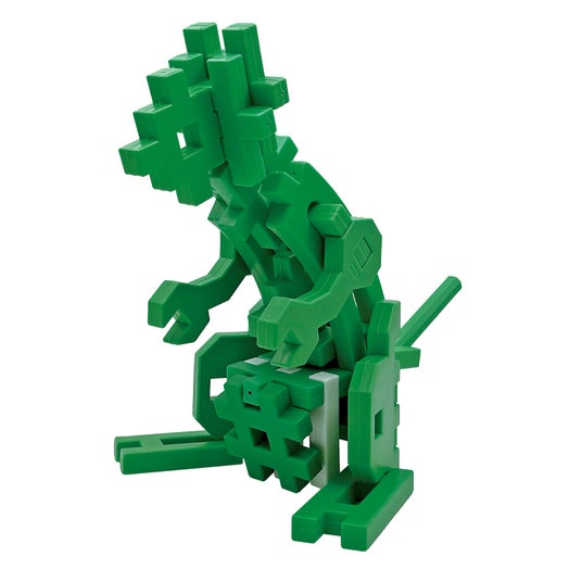 本商品は毎年開催している「ニューブロック作品コンテスト」に投稿いただいたユーザー作品の中から限られたパーツで作られた優れた作品を商品化いたしました。投稿いただいたメイン作品「わに」のほかにも組み替えることで「バッタ」「カンガルー」「プテラノドン」といった作品を作ることができます。作り方が記載された遊び方ガイド付き。