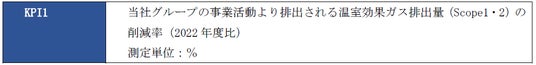本フレームワークにおいては、個別の貸付契約毎に以下の指標をKPIとして選定します。選定したKPIについては、各ローンにかかる書類(金銭消費貸借契約書またはその他関連契約)にて規定します。本KPIは、当社グループの目指す姿を実現するためのサステナビリティ経営推進にかかる取り組みの進捗を測ることが可能なものです。