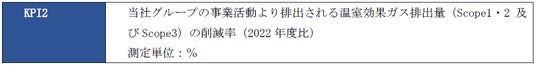 KPI2:Scope1・2及びScope3の温室効果ガス排出量削減率(%)
