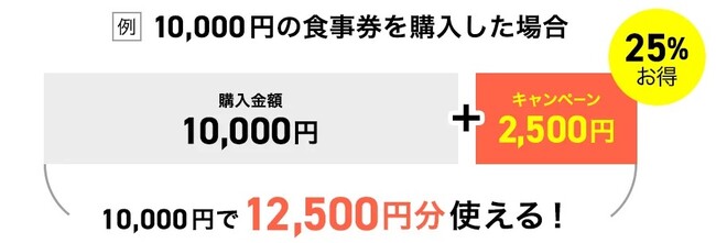 例えば、12,500円の食事券を10,000円で購入することができます。お得に食事ができ、飲食店そして食材を供給する農林漁業者を応援できる、GoTo Eatを利用してみてはいかがでしょうか。